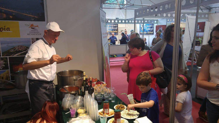Μία από αυτές, ήταν το γαστρονομικό event που διοργανώθηκε την Κυριακή 12 Ιουνίου και από τον Δήμο Σερβίων Βελβεντού στο stand του Δήμου εντός της Έκθεσης. Ο διακεκριμένος Γιώργος Καραβαγγέλας, chef στο εξοχικό «Μετόχι» στο Βελβεντό, μαγείρεψε κοτόπουλο με σως ροδάκινου με τοπικά παραδοσιακά προϊόντα από την περιοχή.