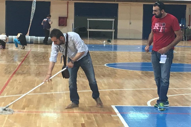 Μόλις χτες βράδυ είχα την τύχη να απαθανατίσω έναν αντιδήμαρχο (φωτ.) που έπιασε σφουγγαρίστρα στην κυριολεξία (και σφουγγάρισε) λίγα λεπτά αφότου το τάραφλεξ είχε ξεστρωθεί από το κλειστό της Λευκόβρυσης με τη μόνη διαφορά ότι εκείνος δεν το γνώριζε!