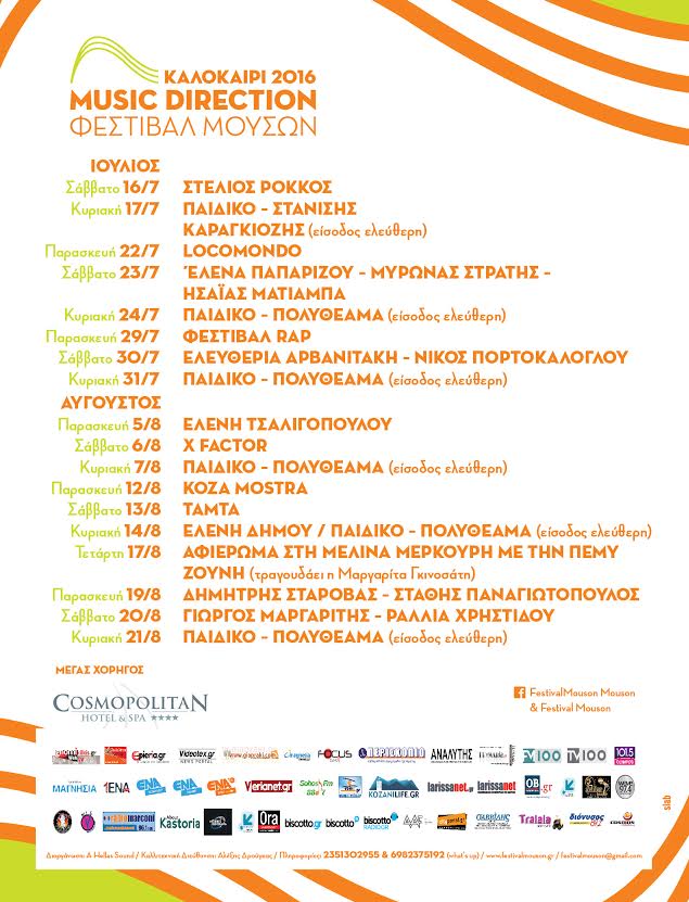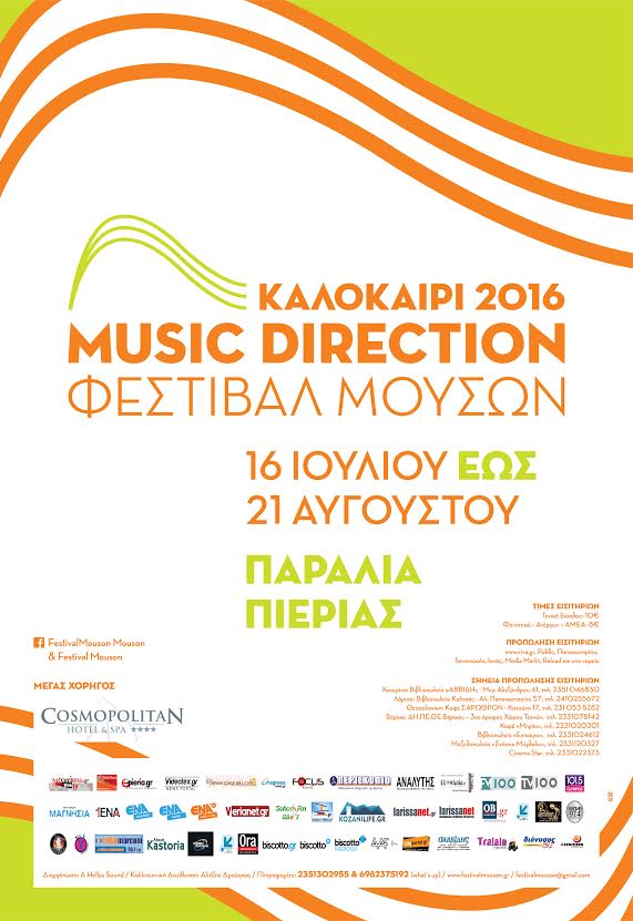 Το Music Direction – 4ο Φεστιβάλ Μουσών επανέρχεται δριμύτερο και ανανεωμένο, φιλοδοξώντας να προσφέρει δύο μήνες (Ιούλιο και Αύγουστο 2016) γεμάτους ψυχαγωγία και διασκέδαση με πολλή μουσική στους κατοίκους και τους επισκέπτες της Πιερίας, αλλά και των γύρω περιοχών.