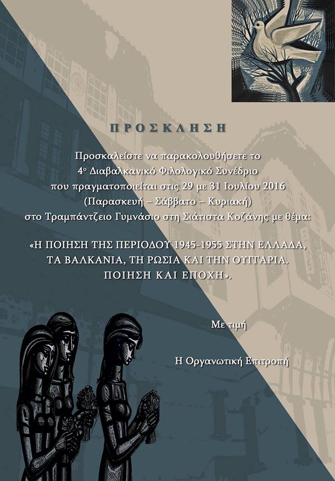 Πραγματοποιείται και φέτος, για τέταρτη συνεχόμενη χρονιά, στην αίθουσα του «Τραμπαντζείου Γυμνασίου», στη Σιάτιστα Κοζάνης, από Παρασκευή 29 έως Κυριακή 31 Ιουλίου 2016, το 4ο Διαβαλκανικό Φιλολογικό Συνέδριο. Διοργανωτές και οικονομικοί υποστηρικτές είναι: η Περιφέρεια Δυτικής Μακεδονίας, ο Δήμος Βοΐου, το Πανεπιστήμιο Ιωαννίνων και οι Νέοι Αγώνες Ηπείρου. Επιστημονικός υπεύθυνος, συντάκτης του ποιητικού Ανθολογίου που θα κυκλοφορήσει αλλά και ψυχή του Συνεδρίου είναι ο Καθηγητής Νεοελληνικής Φιλολογίας και ποιητής Γιάννης Μότσιος.