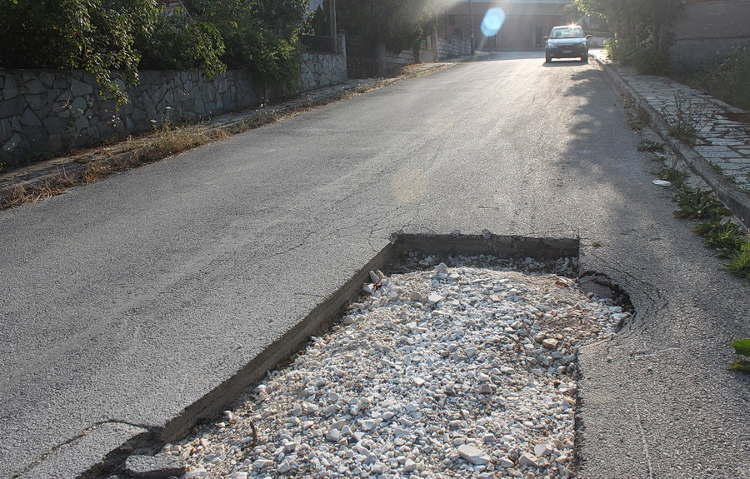 «Σκαλοπάτι» 20 εκατοστών στη μία λωρίδα κεντρικού δρόμου στο Μικρόβαλτο!