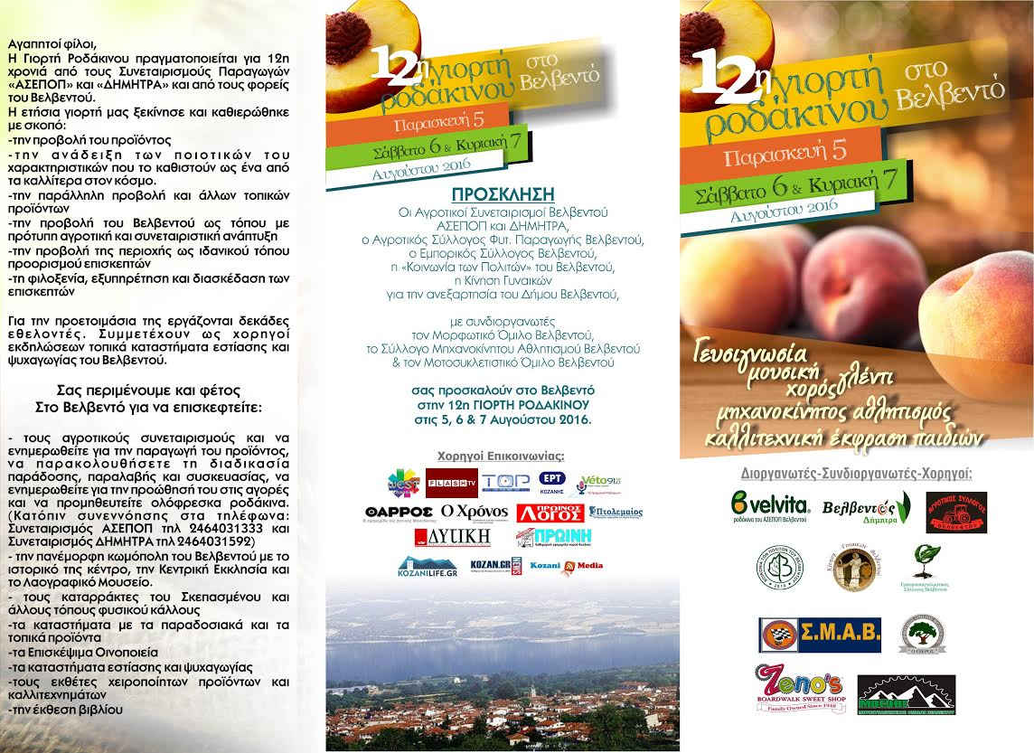 Σέρβια - Βελβεντό 28/07/2016 Πλούσιες εκδηλώσεις στη 12η Γιορτή Ροδάκινου στο Βελβεντό – Δείτε το πρόγραμμα 0 Πλούσιες εκδηλώσεις στη 12η Γιορτή Ροδάκινου στο Βελβεντό.