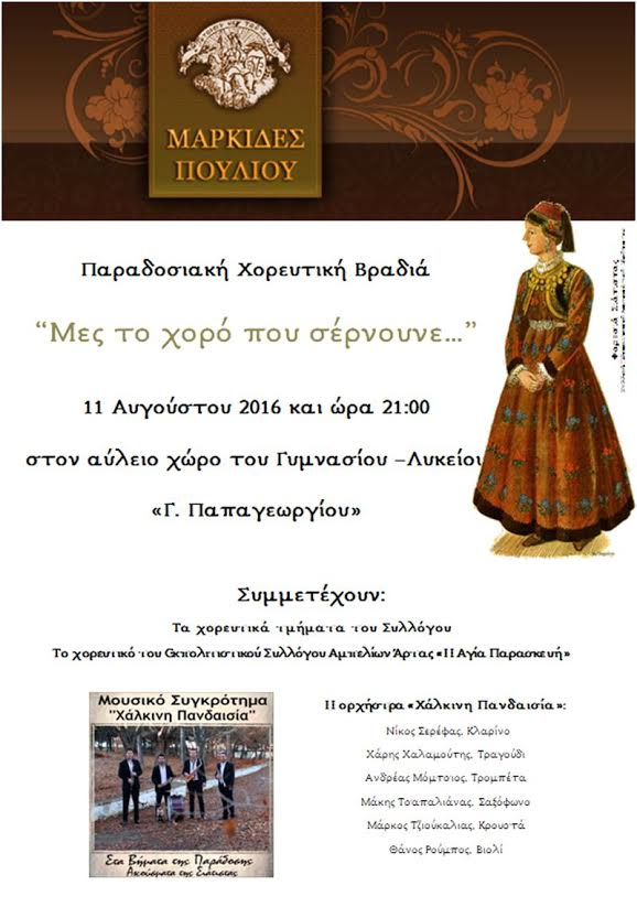 Παραδοσιακή χορευτική βραδιά από τις «Μαρκίδες Πούλιου» Σιάτιστας στις 11 Αυγούστου
