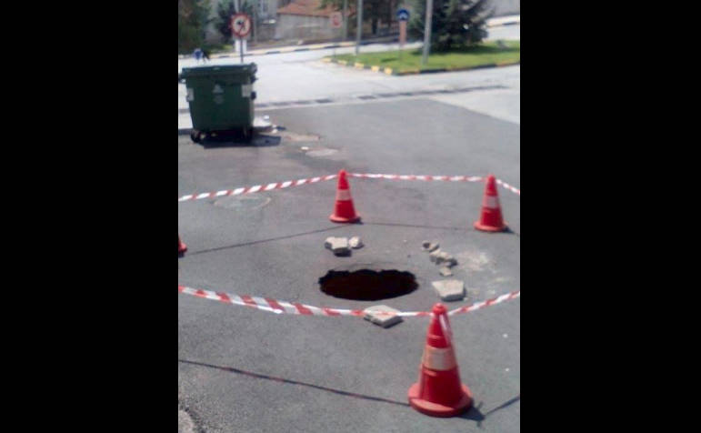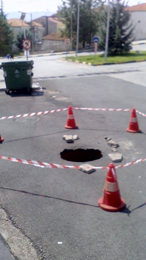 Μια λακκούβα τεραστίων διαστάσεων, με πάνω από 1 μέτρο βάθος αντίκρισαν οι κάτοικοι της περιοχής Αγίας Παρασκευής στην Κοζάνη και συγκεκριμένα στον κυκλικό κόμβο, στην αρχή της οδού Αγίας Παρασκευής.