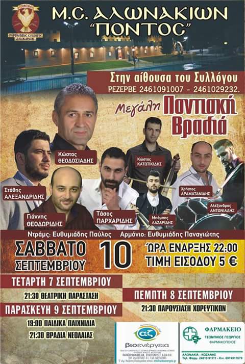 Ο Μορφωτικός Σύλλογος Αλωνακίων “Πόντος” σας προσκαλεί στις 4ήμερες εκδηλώσεις του:
