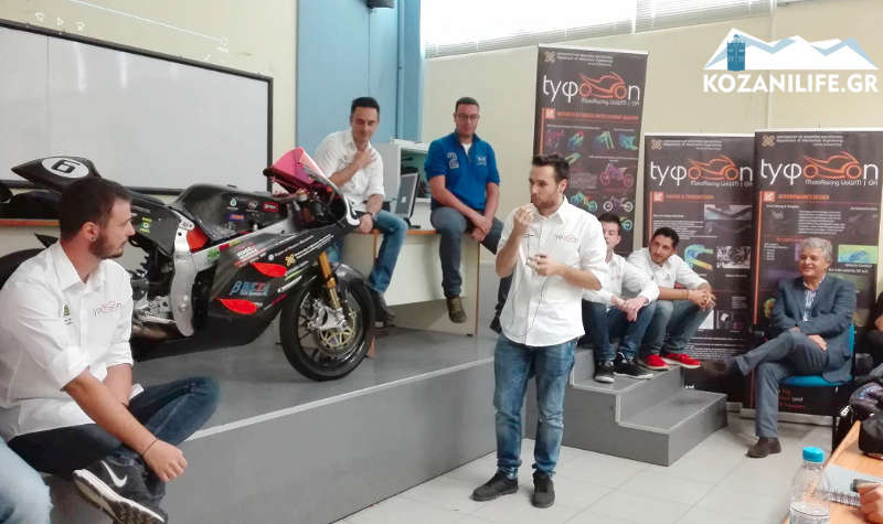 Στο κατάμεστο από φοιτητές φουαγιέ του Τμήματος Μηχανολόγων Μηχανικών του Πανεπιστημίου Δυτικής Μακεδονίας πραγματοποιήθηκε το μεσημέρι της Δευτέρας 24 Οκτωβρίου εκδήλωση παρουσίασης των αποτελεσμάτων αναφορικά με τη συμμετοχή της ομάδας του Πανεπιστημίου Tyφoon MotoRacing στον Παγκόσμιο Διαγωνισμό MotoStudent 2016, όπου από 38 συνολικά συμμετοχές Πανεπιστημίων, κατάφερε να κατακτήσει την 9η θέση.