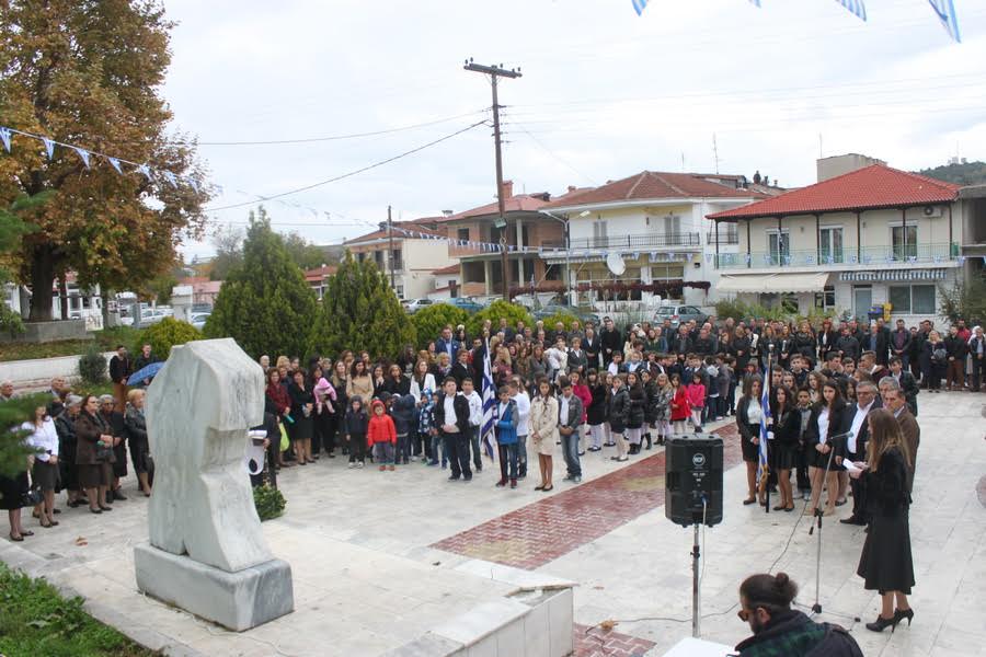 Συμβολικά εκ μέρους της κοινότητας, το στεφάνι κατέθεσαν οι μικροί Σπύρος Δ. Παπαδημητρίου και Αντώνης Αθ. Αλεξόπουλος, προκαλώντας χαρμολύπη στους -κατά συντριπτική πλειοψηφία- υπερήλικες κατοίκους του χωριού, με την αναπόληση παλιότερων εποχών που το Δημοτικό Σχολείο πλησίαζε σε αριθμό μαθητών τους 200!