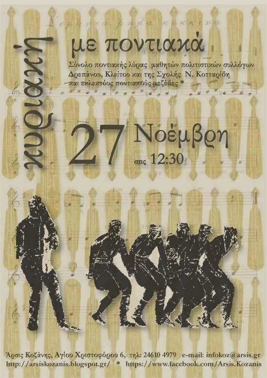 Υποδεχόμαστε το Σύνολο Ποντιακής Λύρας του Νίκου Κοτταρίδη, το οποίο αποτελείται από μαθητές των Πολιτιστικών Συλλόγων του Δρεπάνου, του Κλείτου και της Σχολής του Ν. Κοτταρίδη στην Κοζάνη.