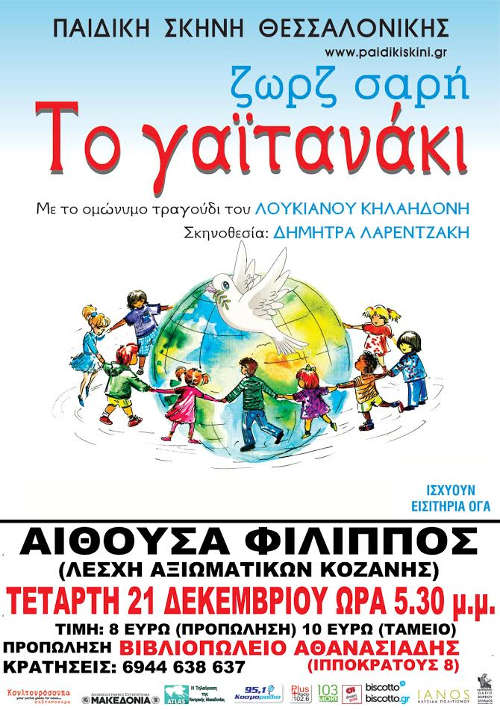 Η ΠΑΙΔΙΚΗ ΣΚΗΝΗ ΘΕΣΣΑΛΟΝΙΚΗΣ παρουσιάζει το μουσικοχορευτικό έργο της Ζωρζ Σαρή «ΤΟ ΓΑΪΤΑΝΑΚΙ» με το ομώνυμο τραγούδι του Λουκιανού Κηλαηδόνη.