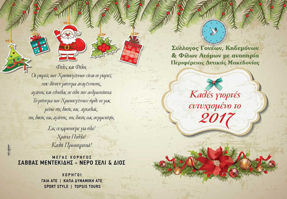 Πτολεμαΐδα 11/12/2016 Χριστουγεννιάτικη γιορτή του Συλλόγου Γονέων, Κηδεμόνων και Φίλων ΑμεΑ Δυτικής Μακεδονίας στην Πτολεμαΐδα 0 Χριστουγεννιάτικη γιορτή του Συλλόγου Γονέων, Κηδεμόνων και Φίλων ΑμεΑ Δυτικής Μακεδονίας στην Πτολεμαΐδα