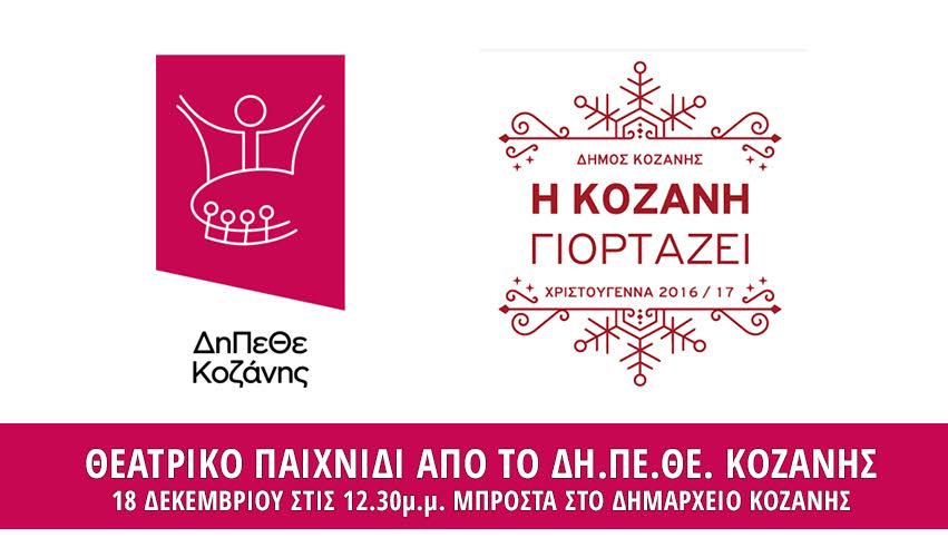 Το ΔΗ.ΠΕ.ΘΕ. Κοζάνης, συμμετέχει στις Χριστουγεννιάτικες εκδηλώσεις του Δήμου Κοζάνης, και προσκαλεί όλους τους κατοίκους του Δήμου να γνωρίσουν τα παιδικά και εφηβικά εργαστήρια του ΔΗ.ΠΕ.ΘΕ. καθώς και το εργαστήριο «Το θέατρο αγαπάει τη διαφορετικότητα».