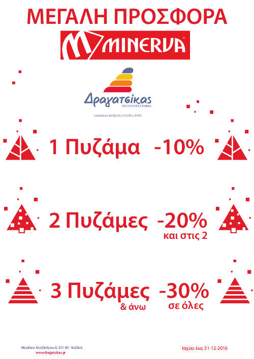 Αποκτήστε με έκπτωση από 10% – 30% όλες τις πυζάμες Μινέρβα, έως τις 31 Δεκεμβρίου 2016.