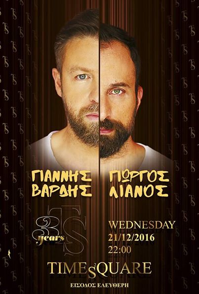 Μεγάλη Live βραδιά το βράδυ της Τετάρτης 21 Δεκεμβρίου με τον Γιάννη Βαρδή και τον Γιώργο Λιανό στο TimeSquare!