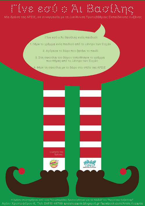 Για περισσότερες πληροφορίες και τρόπους να γίνεται Άι Βασίλης, μπορείτε να επικοινωνείτε με το 2461049799.