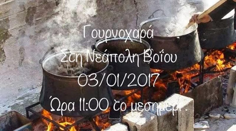 Μια τέτοια γιορτή οργανώνει στις 3 Ιανουαρίου 2017 στις 11 π.μ. ο Πολιτιστικός Σύλλογος Νεάπολης όχι για να σημάνει την έναρξη του δωδεκαημέρου που έτσι ή αλλιώς τελειώνει αλλά για να θυμίσει όλα εκείνα τα πολύτιμα στοιχεία που ένωναν τις ζωές των κατοίκων του Βοῒου, της Νεάπολης.