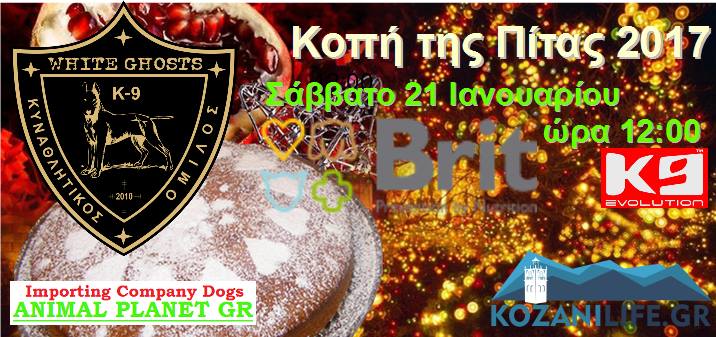 Ο Κυναθλητικός Όμιλος White Ghosts dog sports club σας προσκαλέι στην Κοπή της Πίτας 2017 που θα γίνει στο χώρο μας το Σάββατο 21 Ιανουαριου 2017!