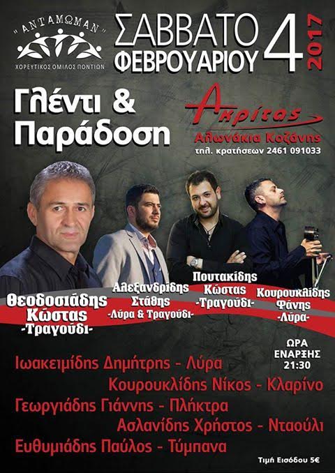 Ο ΧΟΡΕΥΤΙΚΟΣ ΟΜΙΛΟΣ ΠΟΝΤΙΩΝ ΑΝΤΑΜΩΜΑΝ ΠΡΑΓΜΑΤΟΠΟΙΕΙ ΤΟΝ ΕΤΗΣΙΟ ΧΟΡΟ ΤΟΥ, ΤΟ ΣΑΒΒΑΤΟ 4 ΦΕΒΡΟΥΑΡΙΟΥ 2017 ΣΤΟ ΟΙΚΟΓΕΝΕΙΑΚΟ ΚΕΝΤΡΟ ΑΚΡΙΤΑΣ ΣΤΑ ΑΛΩΝΑΚΙΑ ΚΟΖΑΝΗΣ .