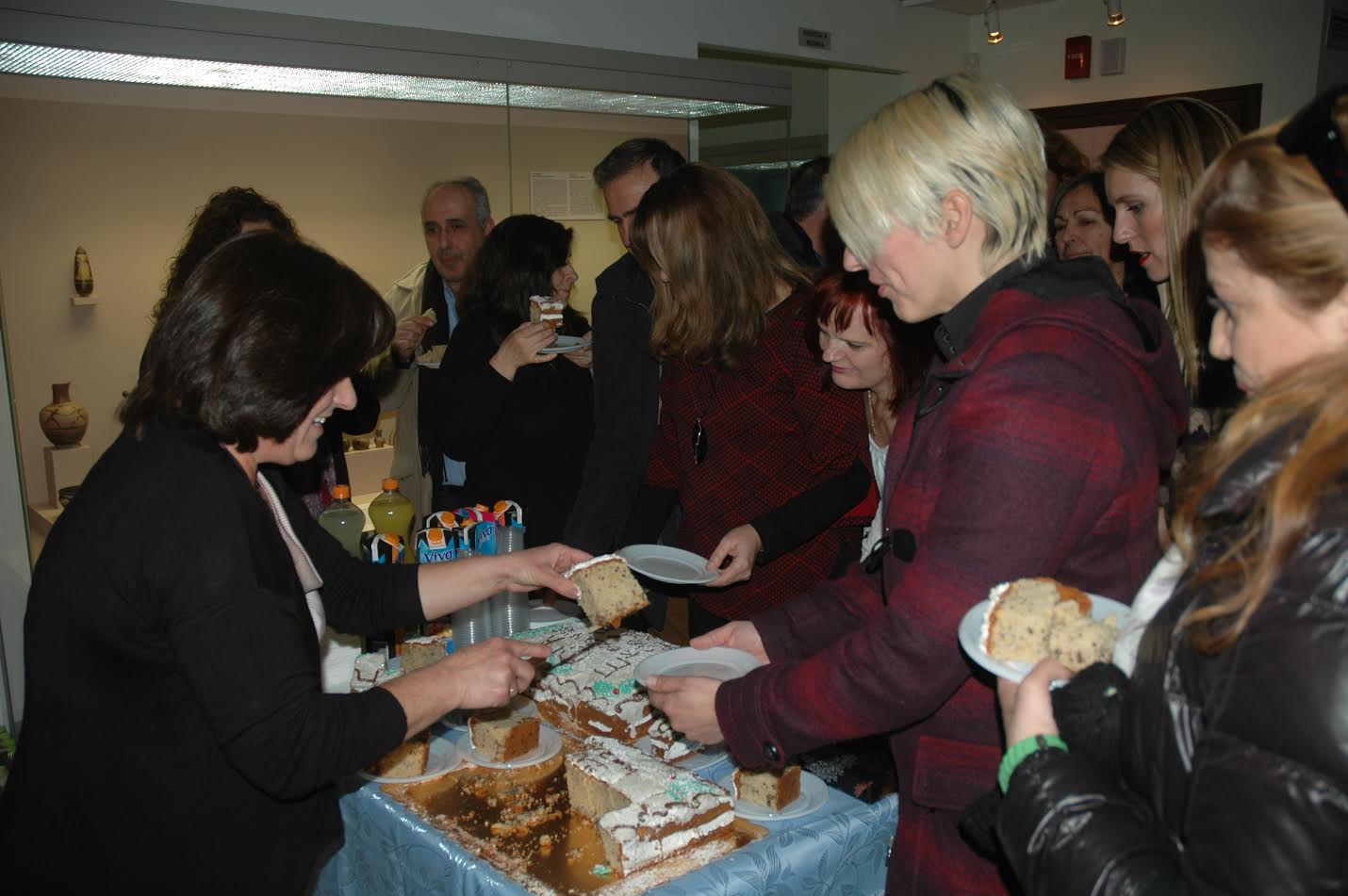Στην πρόσφατα εγκαινιασμένη Αρχαιολογική Συλλογή Κοζάνης έκοψε φέτος την Πρωτοχρονιάτικη πίτα του το προσωπικό της Εφορείας Αρχαιοτήτων Κοζάνης. Την κοπή της πίτας έκανε η Προϊσταμένη της Εφορείας κ. Αρετή Χονδρογιάννη – Μετόκη, η οποία ευχήθηκε σε όλους καλή και δημιουργική χρονιά, με υγεία και αγάπη. Ακολούθησε γεύμα σε μεζεδοπωλείο της πόλης.