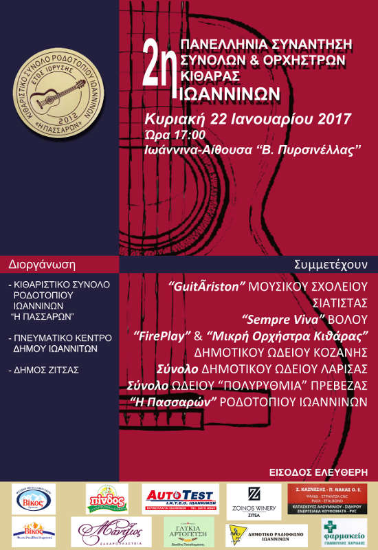 H εκδήλωση θα πραγματοποιηθεί την Κυριακή 22 Ιανουαρίου 2017 και ώρα 17.00 στα Ιωάννινα στην αίθουσα “Β. Πυρσινέλλας”.
