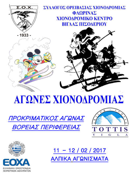 Οι συμμετοχές αθλητών αναμένεται να ξεπεράσουν τις 70. Ο ΣΟΧ Φλώρινας προσκαλεί στο Χιονοδρομικό Κέντρο Βίγλας Πισοδερίου όλους τους φίλους του Σκι, για να θαυμάσουν από κοντά και να ενθαρρύνουν τους μικρούς αθλητές.