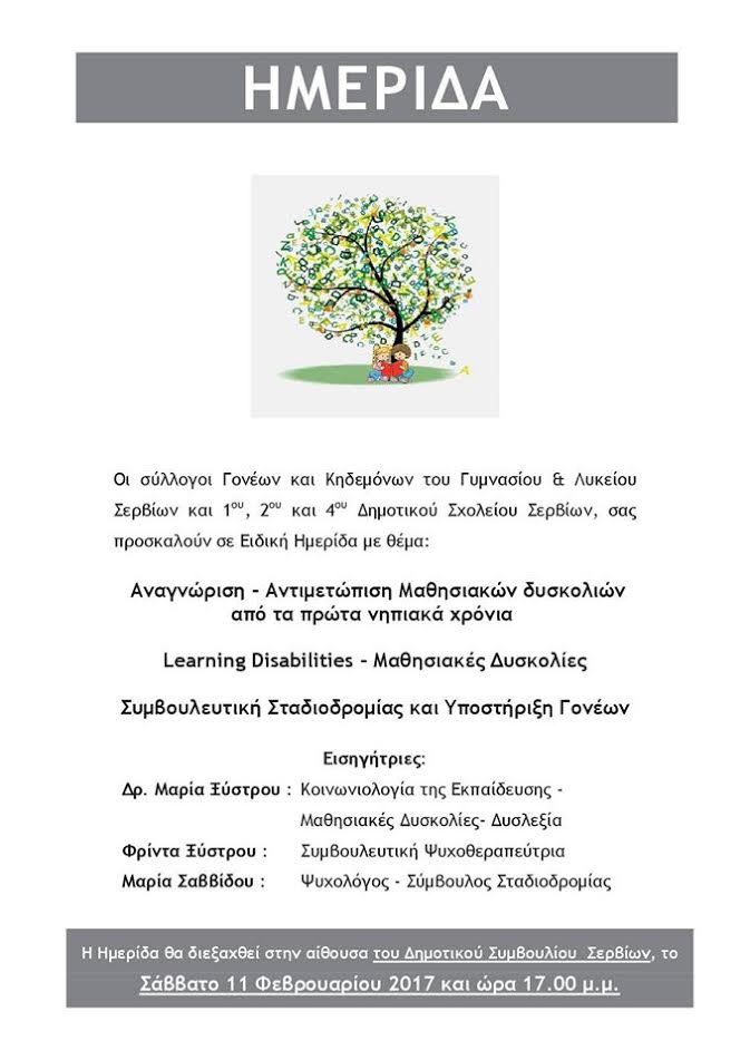 Σέρβια - Βελβεντό 10/02/2017 Ενδιαφέρουσα ειδική ημερίδα στα Σέρβια το Σάββατο 11 Φεβρουαρίου 0 Ενδιαφέρουσα ειδική ημερίδα στα Σέρβια το Σάββατο 11 Φεβρουαρίου