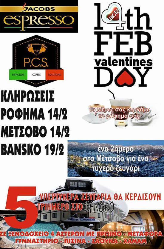 Το Cafe Bar Gazi την Τρίτη 14 Φεβρουαρίου, θα κληρώσει πλούσια δώρα στους ερωτευμένους! Η κλήρωση θα πραγματοποιηθεί στις 22.00 το βράδυ στο Cafe Bar Gazi και οι τυχεροί θα κερδίσουν :