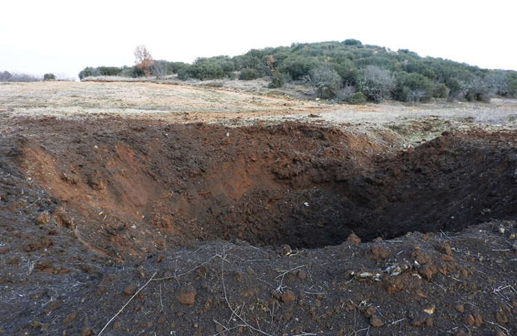 Στις φωτογραφίες μάλιστα που δόθηκαν στη δημοσιότητα φαίνεται ο κρατήρας που δημιουργήθηκε στο χώμα από την έκρηξη αλλά και η βόμβα πριν καταστραφεί…