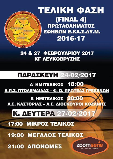 Στο κλειστό γυμναστήριο της Λευκόβρυσης το 4ο FINAL FOUR μπάσκετ του πρωταθλήματος Εφήβων της ΕΚΑΣΔΥΜ