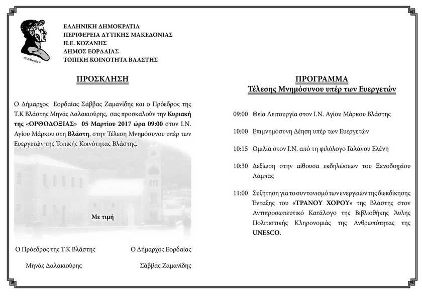 Πτολεμαΐδα 28/02/2017 Τελετή μνημόσυνου υπέρ των ευεργετών της Τοπικής Κοινότητας Βλάστης Εορδαίας 0 Τελετή μνημόσυνου υπέρ των ευεργετών της Τοπικής Κοινότητας Βλάστης Εορδαίας