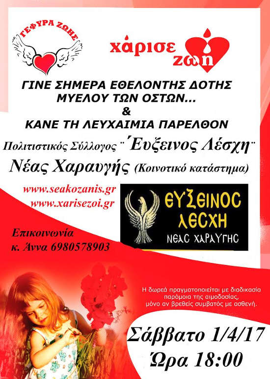 Ελάτε τώρα να δυναμώσουμε τη δεξαμενή δοτών Μυελού των Οστών και που ξέρεις μπορεί να είσαι εσύ ο μοναδικός στη γη που θα κληθείς να σώσεις μια Ζωή.