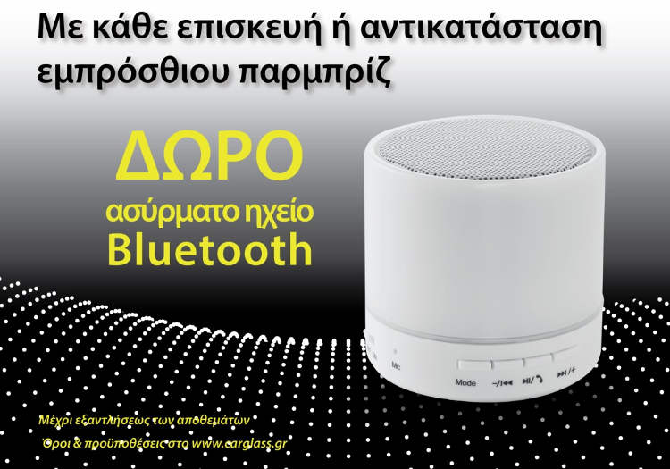 ΔΩΡΟ Ασύρματο Ηχείο Bluetooth με κάθε επισκευή ή αντικατάσταση εμπρόσθιου παρμπρίζ