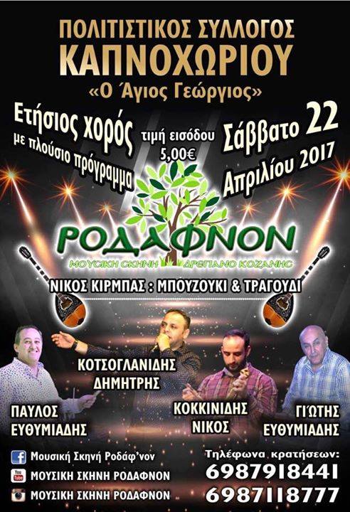 Το Σάββατο 22 Απριλίου 2017 στις 21:00 , θα πραγματοποιηθεί ο Ετήσιος Χορό του Συλλόγου, στη Μουσική Σκηνή Ροδάφνον στο Δρέπανο Κοζάνης .