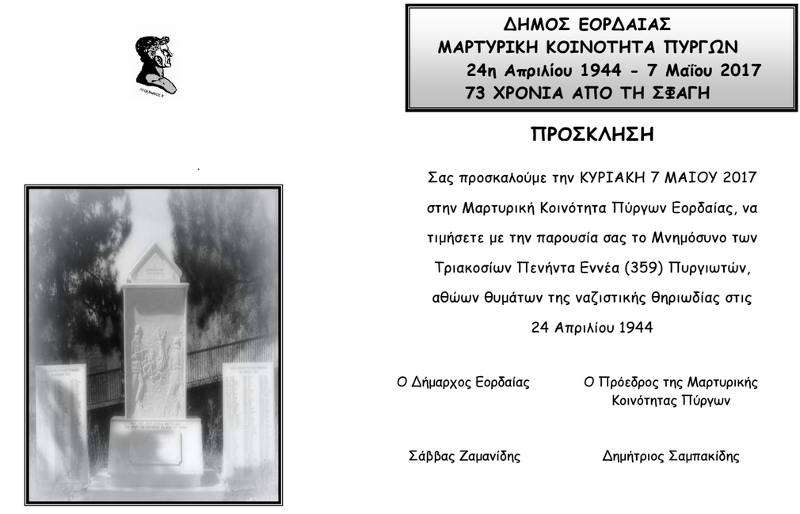 Πτολεμαΐδα 03/05/2017 Το ετήσιο μνημόσυνο των θυμάτων της Ναζιστικής θηριωδίας στους Πύργους Εορδαίας 0 Το ετήσιο μνημόσυνο των θυμάτων της Ναζιστικής θηριωδίας στους Πύργους Εορδαίας