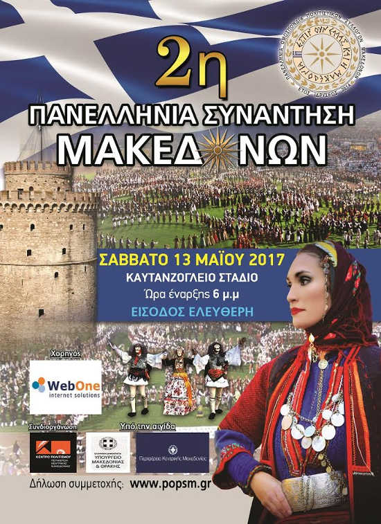 aeryaeynertyeanraeryeatyrtΗ Πανελλήνια Ομοσπονδία Πολιτιστικών Συλλόγων Μακεδόνων (ΠΟΠΣΜ) και το Κέντρο Πολιτισμού Περιφέρειας Κεντρικής Μακεδονίας διοργανώνουν τη 2η Πανελλήνια Συνάντηση Μακεδόνων που θα πραγματοποιηθεί το Σάββατο 13 Μαΐου 2017 και ώρα 18:00 στο Καυτανζόγλειο Στάδιο, Θεσσαλονίκη. Πρόκειται για ένα μοναδικό πολιτιστικό γεγονός, όπου ΟΛΟΙ οι Μακεδόνες ανταμώνουν σε μια πανδαισία ήχων, χρωμάτων και παραδόσεων.
