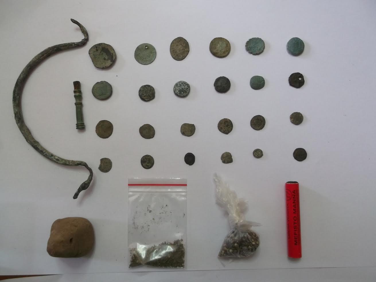 Τα -32- αρχαία αντικείμενα που κατασχέθηκαν χρονολογούνται ότι ανήκουν στους Αρχαίους, Ρωμαϊκούς, Βυζαντινούς και Οθωμανικούς χρόνους
