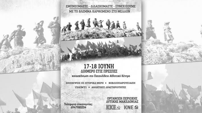 Διήμερο στις Πρέσπες στις 17 και 18 Ιούνη διοργανώνει η Οργάνωση Περιοχή Δυτικής Μακεδονίας του ΚΚΕ και της ΚΝΕ, τονίζοντας πως «Η επιλογή του μέρους δεν είναι τυχαία. Είναι μέρη που περπάτησαν, πολέμησαν, δίνοντας έναν ηρωικό αγώνα, οι μαχητές του Δημοκρατικού Στρατού. Επιπλέον, είναι μια “ανάσα” από τις πόλεις και τα χωριά των Βαλκανίων που έχουν βρεθεί και ξαναβρίσκονται στο στόχαστρο του ιμπεριαλισμού.