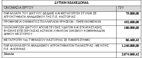 Επιπλέον, με απόφαση του Αναπληρωτή Υπουργού, εντάσσονται στο εθνικό σκέλος του ΠΔΕ, 5 νέα έργα στην Περιφέρεια Δυτικής Μακεδονίας, συνολικού προϋπολογισμού 2 εκατ. ευρώ.