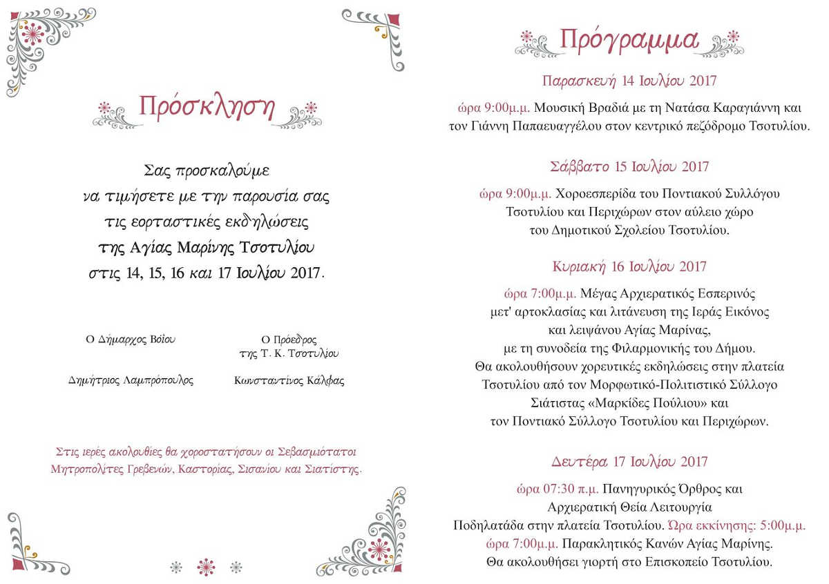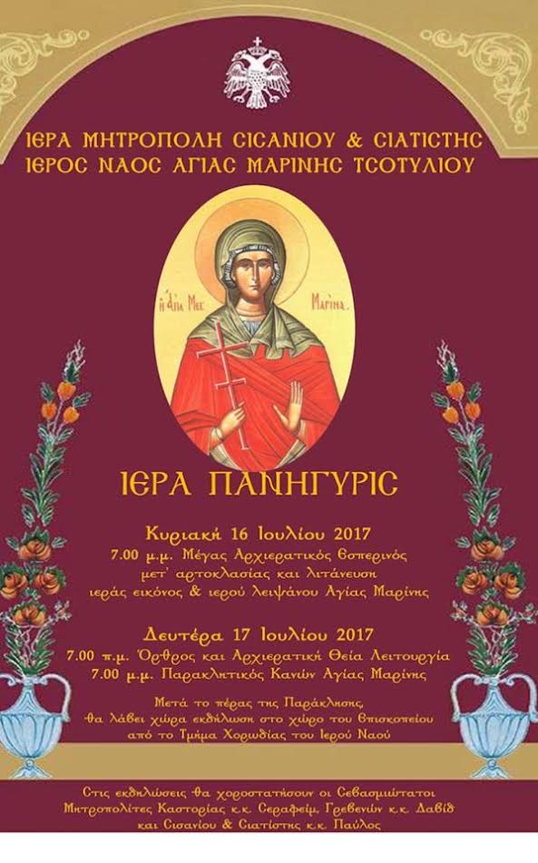 Βόιο 11/07/2017 Εορταστικές εκδηλώσεις της Αγίας Μαρίνης Τσοτυλίου 0 Εορταστικές εκδηλώσεις της Αγίας Μαρίνης Τσοτυλίου