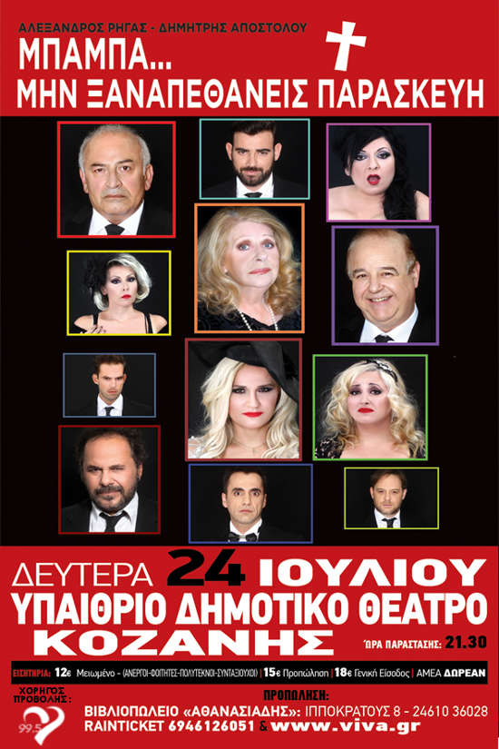 Δευτέρα 24 Ιουλίου στις 21.30 στο Υπαίθριο Δημοτικό Θέατρο Κοζάνης.