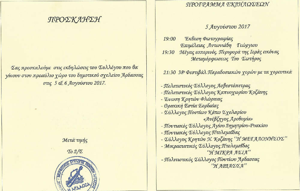 Διήμερες εκδηλώσεις του Συλλόγου Ποντίων Άρδασσας Εορδαίας – Δείτε το πρόγραμμα