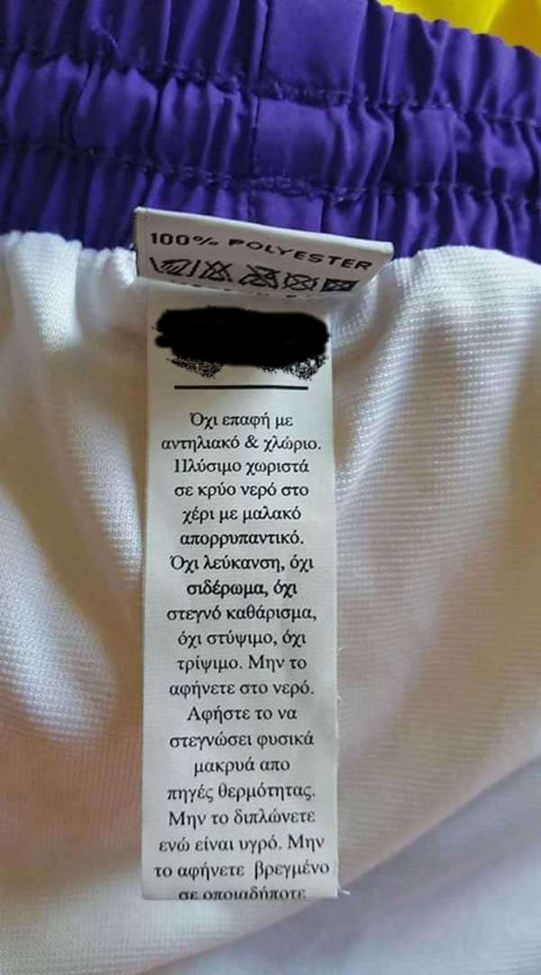 Μια φωτογραφία που είδαμε στο facebook και ανέβασε συμπολίτισσά μας, με μια πραγματικά απίστευτη ετικέτα σε ρούχο, την οποία όταν τη διάβασε, αποφάσισε τελικά να μην το πλύνει!