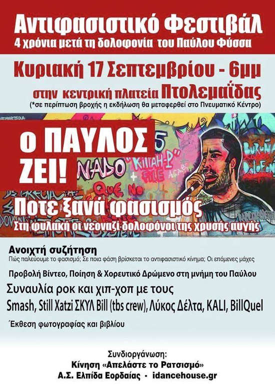 Αντιφασιστικό Φεστιβάλ , 4 χρόνια μετά τη δολοφονία του Παύλου Φύσσα