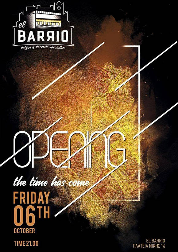 Το νέο κατάστημα El Barrio coffee and cocktail specialists ανοίγει στην πόλη της Κοζάνης το βράδυ της Παρασκευής 6 Οκτωβρίου.