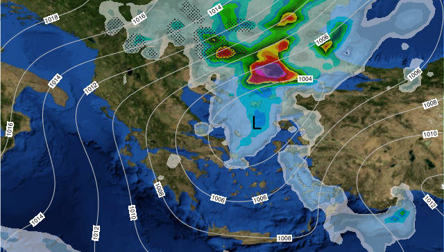 Το Σάββατο 07/10/2017 οι βροχές και οι τοπικές καταιγίδες που ήδη σημειώνονται στα δυτικά και στα βόρεια σταδιακά θα επεκταθούν ανατολικότερα, με τα φαινόμενα να είναι έντονα στην Ανατολική Μακεδονία, στη Θράκη, στα νησιά του Ανατολικού Αιγαίου και στα Δωδεκάνησα (βλ. χάρτη). Θα πρέπει να επισημανθεί ότι σημαντικά ύψη βροχής αναμένονται τις απογευματινές ώρες του Σαββάτου και στο νησί της Σαμοθράκης. Πάντως τα φαινόμενα σταδιακά από τα δυτικά και έως τις βραδινές ώρες σε ολόκληρη τη χώρα θα σταματήσουν. Πρόσκαιρες χιονοπτώσεις αναμένονται στα βόρεια ορεινά (>1500 μέτρων). Οι άνεμοι θα πνέουν από νότιες διευθύνσεις ισχυροί έως σχεδόν θυελλώδεις 6-7 μποφόρ, όπου βαθμιαία από τα βόρεια θα στραφούν σε βορειοδυτικούς και θα ενισχυθούν σημαντικά φτάνοντας στο Βορειοδυτικό Αιγαίο και το Ιόνιο τα 8 και τοπικά 9 μποφόρ. Η θερμοκρασία σε βαθμιαία πτώση από τα βόρεια.