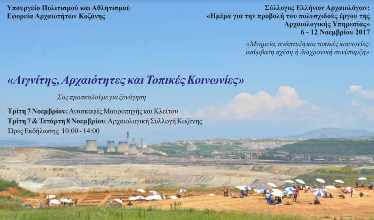 α) Την Τρίτη 7 Νοεμβρίου 2017 και κατά τις ώρες 10:00-14.00, ξενάγηση στο χώρο των ανασκαφών που διενεργούνται στα λιγνιτωρυχεία της ΔΕΗ στη Μαυροπηγή και τον Κλείτο.