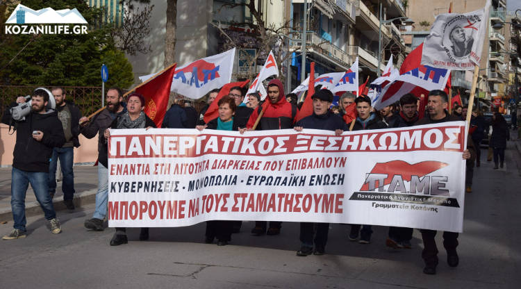 Απεργιακές συγκεντρώσεις και πορεία φορέων και Σωματείων εργαζομένων πραγματοποιήθηκε το πρωί της Πέμπτης 14 Δεκεμβρίου 2017 στην κεντρική πλατεία και στους δρόμους της Κοζάνης.