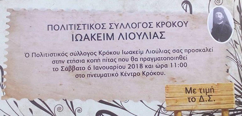 Κοζάνη 05/01/2018 Η ετήσια κοπή πίτας του Πολιτιστικού Συλλόγου Κρόκου Ιωακείμ Λιούλιας 0 Η ετήσια κοπή πίτας του Πολιτιστικού Συλλόγου Κρόκου Ιωακείμ Λιούλιας
