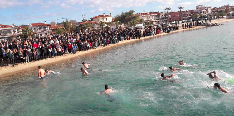 Συγκινητική δε η παρουσία των παιδιών που δεν πτοήθηκαν από τα παγωμένα νερά και έπεσαν να πιάσουν τον σταυρό.