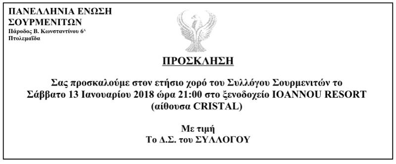 Πτολεμαΐδα 09/01/2018 Ο ετήσιος χορός του Συλλόγου Σουρμενιτών στην Πτολεμαΐδα 0 Ο ετήσιος χορός του Συλλόγου Σουρμενιτών στην Πτολεμαΐδα