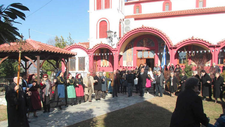 Η τελετή του Αγιασμού των υδάτων έγινε στο προαύλιο του ι. Ναού (στο κιόσκι σε δοχεία Αγιασμού), ακολούθησε ο φωτισμός των πιστών και ο μεγάλος κυκλικός χορός (στον οποίο συμμετείχαν γυναίκες και άνδρες ντυμένοι με παραδοσιακές φορεσιές) των Θεοφανείων-Φώτων 2018 στο προαύλιο.